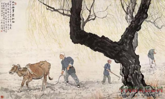《九州無事樂耕耘》是一幅農(nóng)耕題材的作品,這種人與動(dòng)物相結(jié)合的宏幅巨制在徐悲鴻的創(chuàng)作精品中是極為罕見的。1951年郭沫若在莫斯科被授予“加強(qiáng)國際和平斯大林金質(zhì)獎(jiǎng)?wù)隆薄P毂櫕@悉后,抱病為郭沫若繪制了這件150×250cm的宏幅巨制。作品含有巧妙的用意;郭徐二人同為儒臣,卻同樣有顆為國民奔走呼號(hào)的文人俠客之心,以此砥礪,共同為建設(shè)新中國盡自己的微薄之力, 這幅作品是徐悲鴻與郭沫若兩位近現(xiàn)代文化名人深厚友誼的見證。