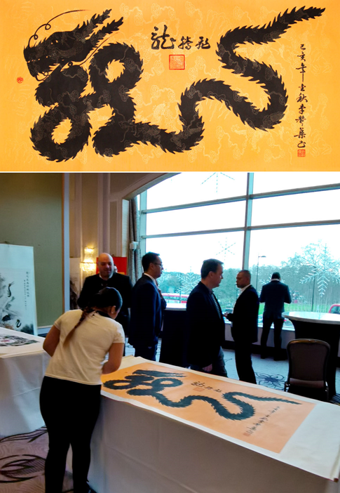 2014年6月27日國(guó)際小姐慈善拍賣(mài)會(huì)在四川成都舉行書(shū)畫(huà)藝術(shù)作品拍賣(mài),書(shū)法作品“海納百川”138×70CM和國(guó)畫(huà)作品“繁榮昌盛”138×70CM,拍賣(mài)成交, 拍賣(mài)所得全部費(fèi)用樂(lè)捐為社會(huì)慈善公益活動(dòng)做貢獻(xiàn);