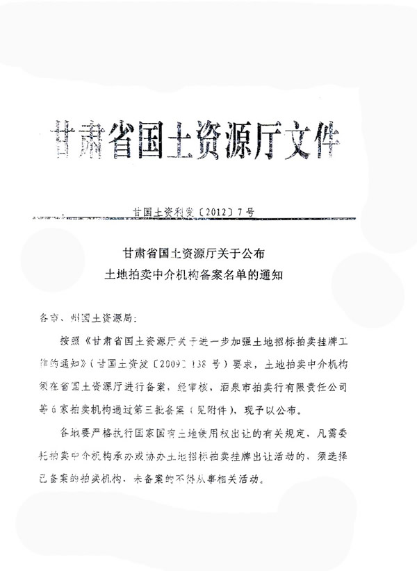 省國(guó)土廳“土地拍賣中介機(jī)構(gòu)” 文件